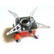 Корпус примуса выполнен полностью из металла. Нижняя часть корпуса покрашена в красный цвет, верхняя часть и ножки серебристого цвета.